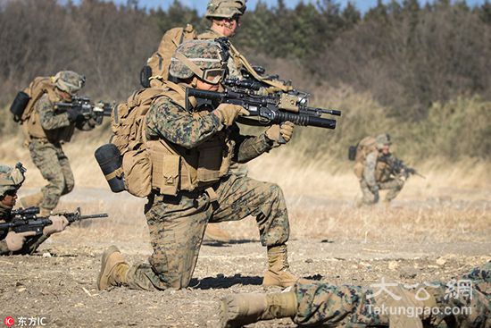资料图:当地时间2017年3月10日,日本群马县,日本陆上自卫队与美国海军陆战队在陆自相马原演习场举行日美联合训练。/来源:东方ic