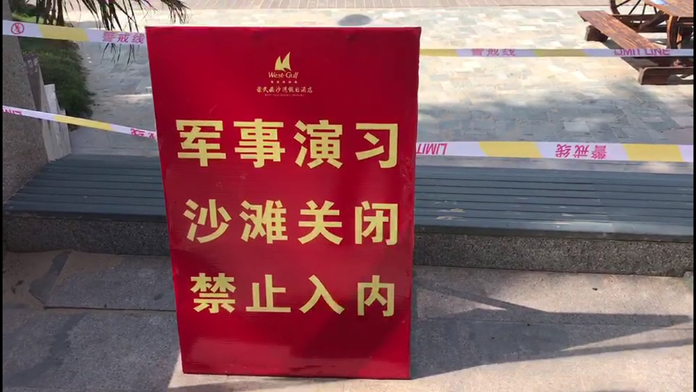 在岸上的崇武古城及距此不到两公里的清沙湾,原本这个时节游人不少。但离演习区域最近的海域景点都挂着“军事演习,沙滩关闭,禁止入内”的红色警示牌,景区全部封闭,人员不得下到沙滩。而周边道路,当地的相关部门设置了路障,也进行了一定程度的封闭。