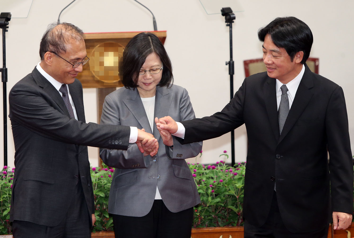 资料图:2017年9月5日,蔡英文(中)宣布赖清德(右)接任“行政院长”(图:中央社)