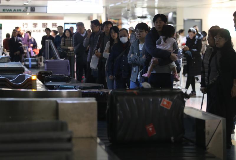 资料图:2017年12月22日上午,桃园机场第二航厦两度跳电,不少旅客在昏暗的光线下领取行李 中央社
