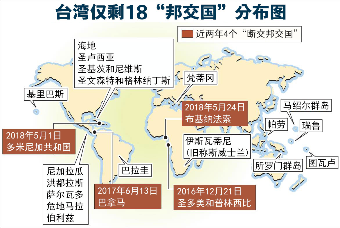 据悉,圣多美普林西比、巴拿马、多米尼加,再加上布基纳法索,两年内已有4国与台当局“断交”。布基纳法索政府24日发表声明称,布基纳法索政府作出这一决定,是为扞卫布基纳法索及其人民在国际社会中的利益。