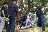 台北市阳明山阳明公园花钟公园旁的蒋介石铜像22日遭人泼漆、砍断铜像头部。事隔日本技师八田与一铜像被台北市前议员李承龙断首才一周,...