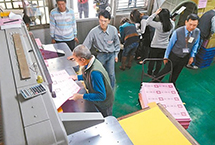台湾地区正、副领导人、“立委”选举周六投票,嘉义市选委会主委等人,昨天视察印刷厂,昨天晚间选票印制完成,今天将交给各区公所清点...