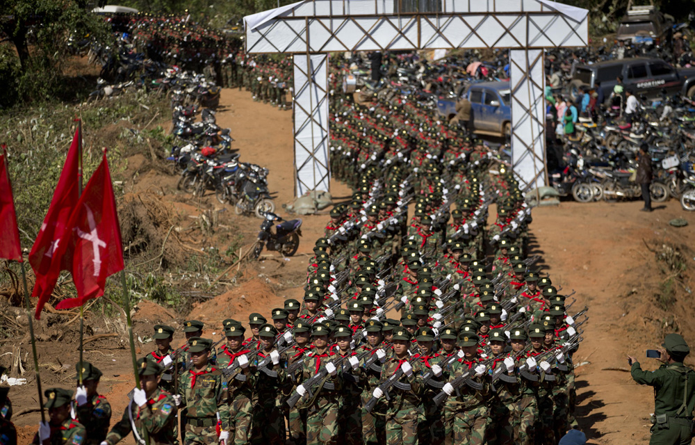 图:缅甸政府军12日在北掸邦举行阅兵仪式/美联社