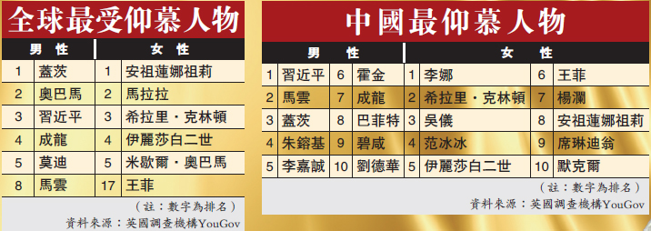 YouGov此次访问了全球23个国家约2.5万人,调查他们心中最仰慕的人物。