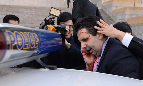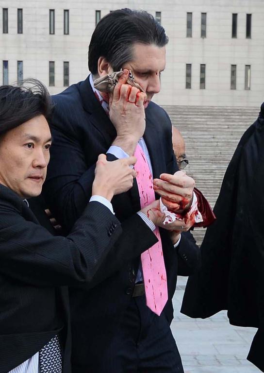 美国驻韩国大使李柏特5日上午7时40分许在进入首尔世宗文化会馆世宗大厅时遭到不明身份男子的袭击,脸部受重伤并造成大量出血,紧急被送往医院。