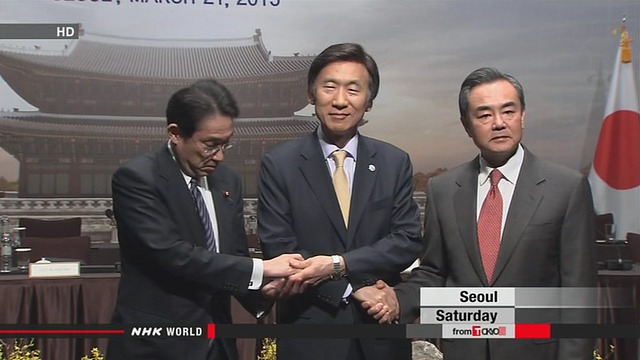 大公网3月23日讯 据共同社报道,日中韩三国外长21日在首尔举行了3年来首次会谈。3位外长就努力促成三国首脑会谈达成了一致。