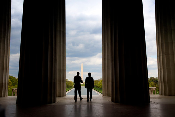 4月28日,美国总统奥巴马和日本首相安倍晋三在华盛顿林肯纪念堂。新的军事合作规则反映了对朝鲜尤其中国的担忧。