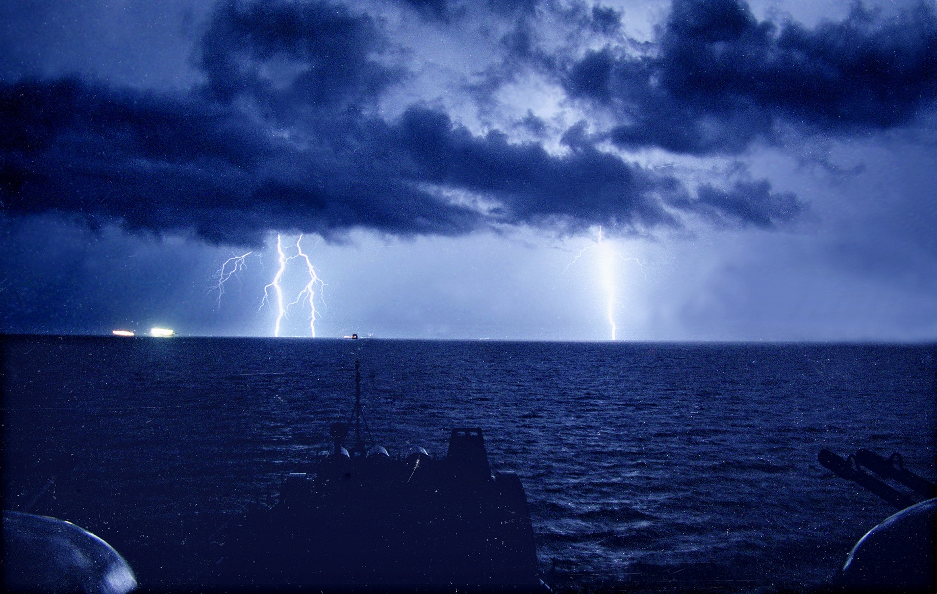 中国驱逐舰舰风雨夜渡马六甲海峡。资料图