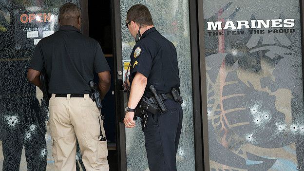 大公网7月17日讯 综合外媒报道,美国田纳西州查塔努加两处海军所属地点发生枪击案,四名海军陆战队员被杀。两起案件正在调查当中,疑似“国内恐怖主义”行为。两个枪击地点相距10公里,分别是海军后备役中心和招募办公室。查塔努加市警方说,在两处地点开枪的是同一个枪手,并证实“开枪者”已经被打死。
