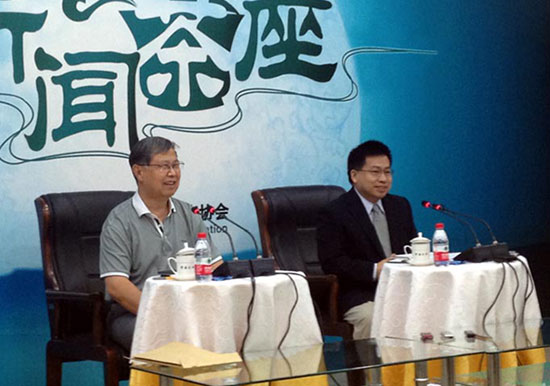 中国国际问题研究院副院长阮宗泽(右)介绍中美关系