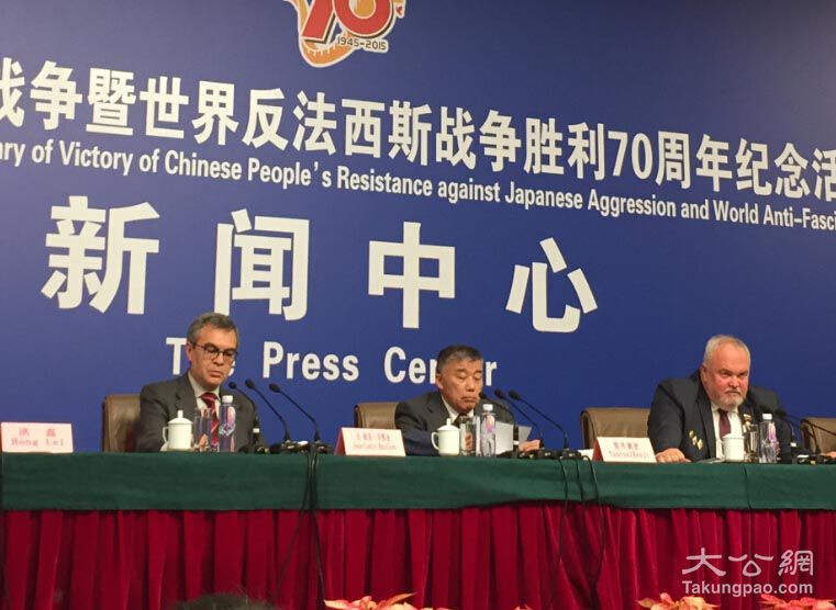 记者注意到,当天出席记者会的还有美国飞虎队员及队员遗孀,前苏联军队著名统帅之孙,及抗战期间法国运送医疗物资的杰出医生之子。而美国和法国的代表,被不约而同地问到“如何看待西方领导人不出席中国阅兵并质疑阅兵的目的性”的问题。