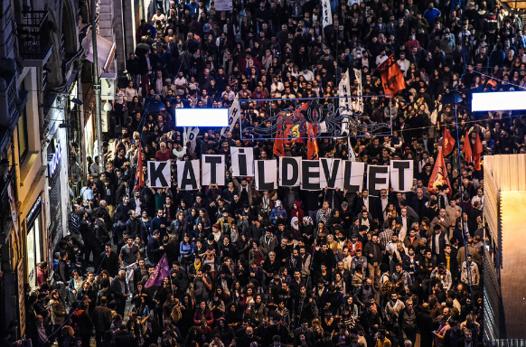图:伊斯坦布尔大批民众高举“杀手国家”标语示威抗议/法新社