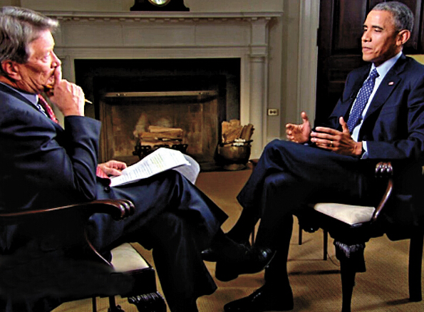 图:美国总统奥巴马(右)接受《60分钟时事杂志》主持人克罗夫特访问\美国哥伦比亚广播公司