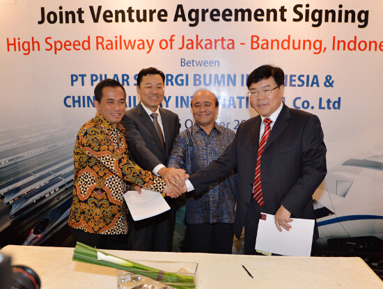 中国铁路总公司16日在雅加达与印尼四家国有企业签署协议成立合资企业,这标志中国企业赢得雅万高铁项目。标志着铁路“走出去”取得历史突破。