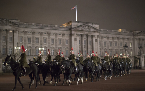 英女王伊丽莎白二世将在皇家骑兵检阅场为习近平主席举行隆重的欢迎仪式。最近几天,每到夜深人静的时候,英国皇家骑兵检阅场上就会聚集来自英国陆军王室近卫军的1100多名士兵和230多匹军马,在夜色中抓紧排练。 (新华社)