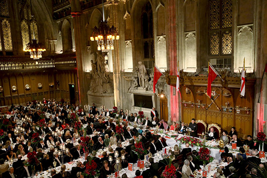 图:当地时间21日晚,伦敦金融城市长在金融城市政厅举行隆重仪式和晚宴,欢迎习近平对英国进行国事访问\路透社