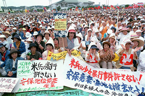20年前的这一天,以美军士兵强暴少女的事件为契机,冲绳县约8.5万人举行“县民总誓师大会”,对美军基地表示不满。