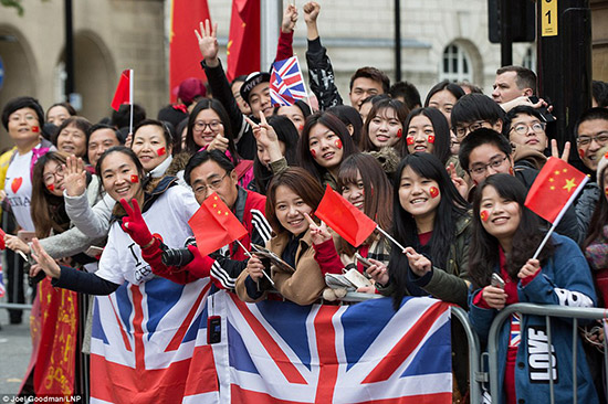 图:曼彻斯特中国留学生及华人华侨23日夹道欢迎习主席到访当地/《曼彻斯特晚报》