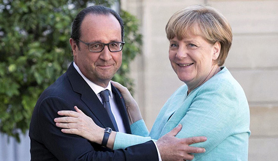 欧盟是中国第一大贸易伙伴,中国支持欧盟的繁荣与强大。法国和德国通过紧密协调,成功推动达成各方接受的希腊危机解决方案,并重树对欧元的信心。两国深信欧盟一体化进程和欧元不可逆转。此外,我们将扩大同中方的合作,推动人民币国际化。