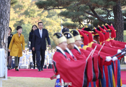 10月31日,朴槿惠在青瓦台为李克强举行欢迎仪式。