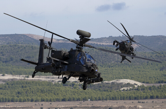 图:参与军演的阿帕奇直升机\路透社
