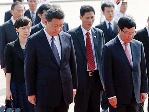当天上午,习近平还拜谒胡志明陵并敬献花圈。