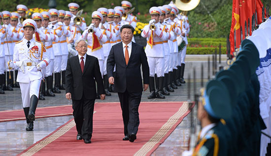 当前,中越两国都处在改革发展的关键时期。中国人民正在按照全面建成小康社会、全面深化改革、全面依法治国、全面从严治党的战略布局,齐心协力为实现“两个一百年”奋斗目标、实现中华民族伟大复兴的中国梦而奋斗。越南正在筹备越南共产党第十二次全国代表大会,加紧推进民富、国强、民主、公平、文明的社会主义现代化国家建设。在这一背景下,发展中越友好、深化互利合作,不仅是历史赋予我们的重要使命,也是推进各自国家建设的共同需求,符合双方战略利益。