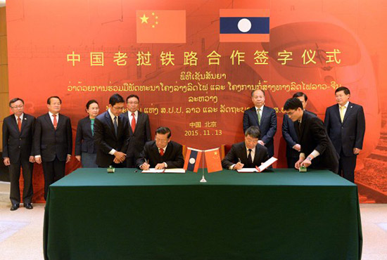 中新社北京11月13日电(记者周锐)中老铁路项目签约仪式13日在北京举行。老挝政府副总理宋沙瓦·凌沙瓦与中国国家发展和改革委员会主任徐绍史分别代表两国政府签署了政府间铁路合作协定,标志着中老铁路正式进入实施阶段,为项目后续建设运营及两国进一步深化铁路基础设施合作打下了基础。