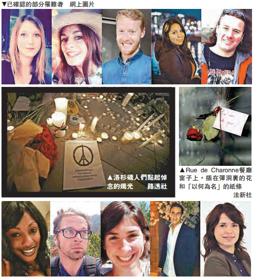 据英国《每日邮报》报道:22岁南非少女鲍厄里(Isobel Bowdery)事发时正在遭遇最血腥袭击的巴塔克兰剧院,她在社交网站脸谱(Facebook)上载染血上衣及忆述生死关头的画面。鲍厄里称最初以为枪手出现是当日乐队表演的一部分,直至开枪才惊悉:“数十个人在我面前被枪伤,流满一地鲜血。多个成年男人抱着女友尸体的哭喊声,响彻整个小小的音乐表演场地。”