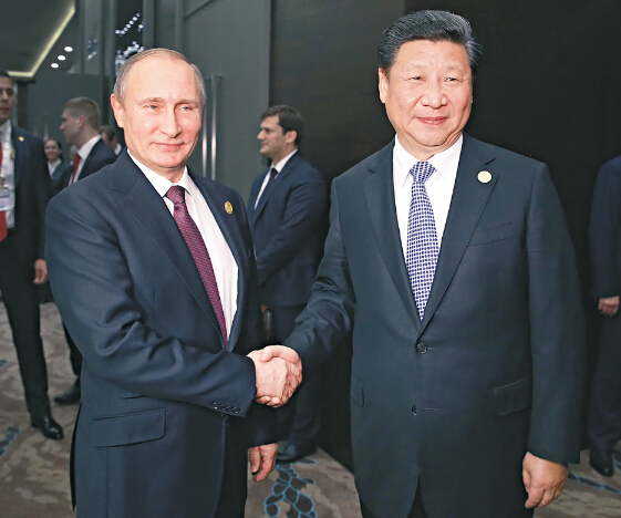 普京表示,俄中两国各领域保持密切交往,双方要积极深化贸易、能源、核电、化工、高科技、金融、地方、人文等交流合作。俄方支持欧亚经济联盟同中方的丝绸之路经济带建设对接。俄中都致力于维护国际法原则,在许多重大国际问题上看法相近。
