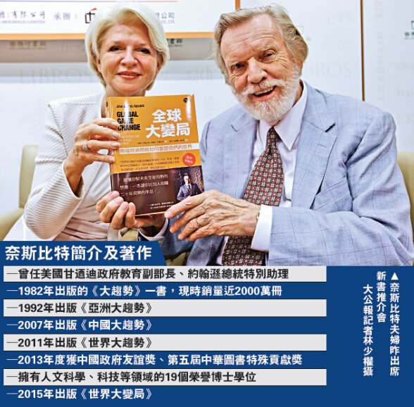 图:奈斯比特夫妇昨出席新书推介会/大公报记者林少权摄