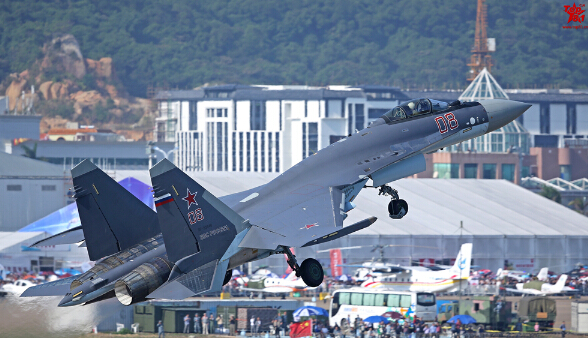 图:苏35在2014珠海航展进行飞行表演/资料图片