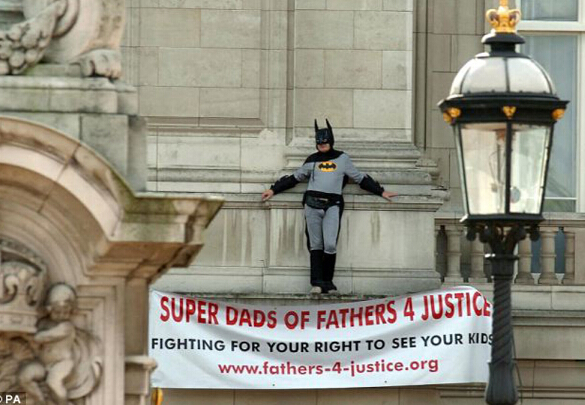 此前,马修斯和史密斯也曾多次高调示威,宣传争取父权。史密斯曾在今年5月英国大选期间,扮成长寿儿童节目《芝麻街》的其中一个角色毛毛,在首相卡梅伦所属的牛津郡威特尼选区,站在卡梅伦面前抗议。马修斯则曾爬上下议院议长纪嘉林位于萨里郡阿什蒂德村的住所,扮成卡通角色建筑师阿博抗议家事法庭系统。