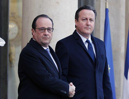 巴黎恐怖袭击后,法国总统奥朗德会见各国领导人,商讨建立反IS联盟。图为奥朗德会晤英国首相大卫·卡梅伦,双方同意努力在整个欧洲范围内实施更加严格的边境管控措施。