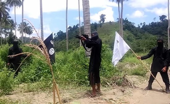 ISIS发布的影片显示,“菲律宾哈里发(伊斯兰帝国)的士兵们”完成一系列攻击过程训练,以锻炼自己的体能和身手。一小群新丁穿上类似的黑衣和蒙面,攀爬绳梯,在有刺铁丝网下爬行,和练习使用武器。在此之前,多名圣战指挥官现身敦促菲律宾人前往叙利亚加入ISIS。