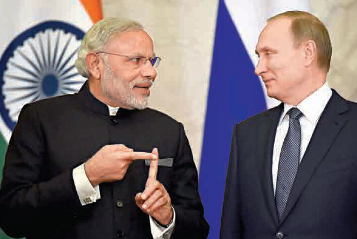 图:印度总理莫迪(左)24日与俄罗斯总统普京在莫斯科克里姆林宫举行记者会 法新社