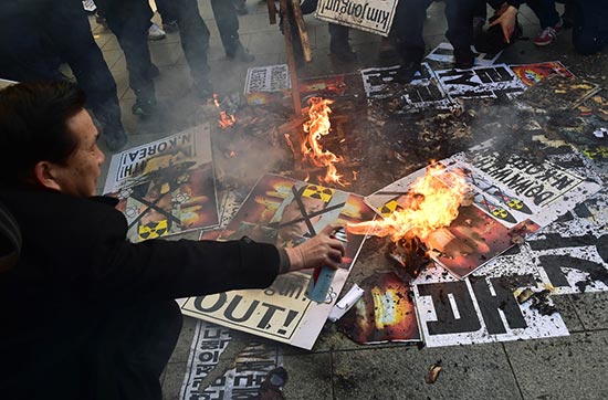 图:韩国民众7日抗议朝鲜进行氢弹试验/法新社