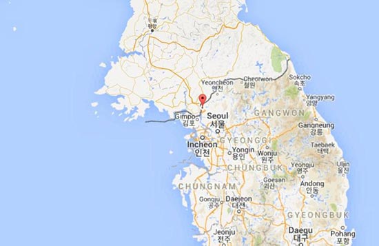 韩国13日对飞越韩朝边界的不明飞行物体鸣枪示警,韩国媒体报道,这个不明物体疑为朝鲜无人机。图为都罗山位置。