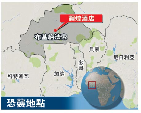 大公网1月17日讯 综合路透社、《纽约时报》、新华社报道:非洲国家布基纳法索首都瓦加杜古市中心的辉煌酒店(Splendid Hotel)当地时间15日晚遭到恐怖袭击,造成来自18个国家的23人死亡。126名人质被从酒店中解救出来,4名恐怖分子被击毙。“基地”非洲分支“伊斯兰马格里布基地组织”(AQIM)头目宣称对袭击负责,称目的是报复西方。