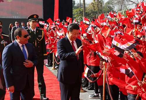 当地时间1月21日,中国国家主席习近平在开罗库巴宫同埃及总统塞西举行会谈。两国元首见证了《中华人民共和国和阿拉伯埃及共和国关于加强两国全面战略伙伴关系的五年实施纲要》、《中华人民共和国政府和阿拉伯埃及共和国政府关于共同推进丝绸之路经济带和21世纪海上丝绸之路建设的谅解备忘录》以及电力、基础设施建设、经贸、能源、金融、航空航天、文化、新闻、科技、气候变化等领域多项双边合作文件的签署,并共同为中埃苏伊士经贸合作区二期揭牌。