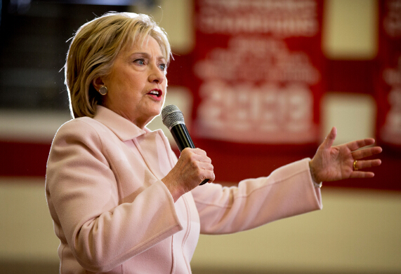 图:民主党总统参选人希拉里·克林顿29日到艾奥瓦州进行演讲/美联社