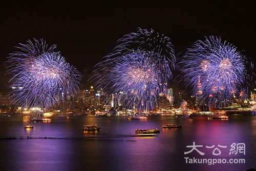 6日晚,纽约哈德逊河上举办盛大的春节焰火表演,欢庆