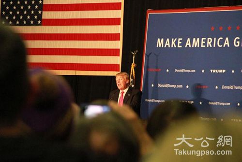 美国新罕州总统初选结果揭晓,特朗普、桑德斯大赢党内对手。图为特朗普在新罕布什尔州拉票时向选民发表演讲/大公报记者黄晓敏摄)