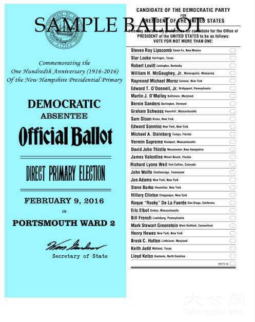 新罕布什尔州民主党选票样本