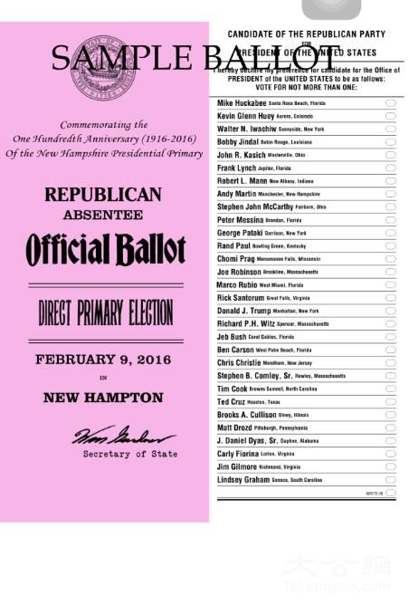 新罕布什尔州共和党选票样本