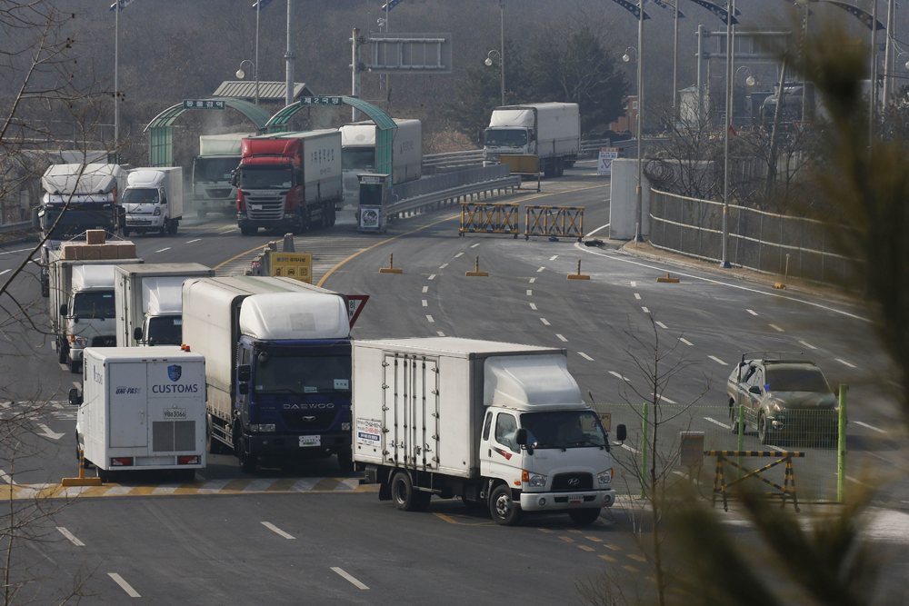 大公网2月12日讯 综合路透社、韩联社及英国广播公司报道,11日,十几辆韩国卡车载着从开城工业园区拿出来的设备和物品越过边境从朝鲜回国。报道指,由于朝鲜上周试射远程导弹,韩国政府10日起中断运作两韩合作的“开城工业园区”。朝鲜方面11日也发表声明,称即日起将开城工业园区改为军事禁区,全面关闭朝韩联络渠道,并将开城工业园区内停留的所有韩方人员驱逐出境。