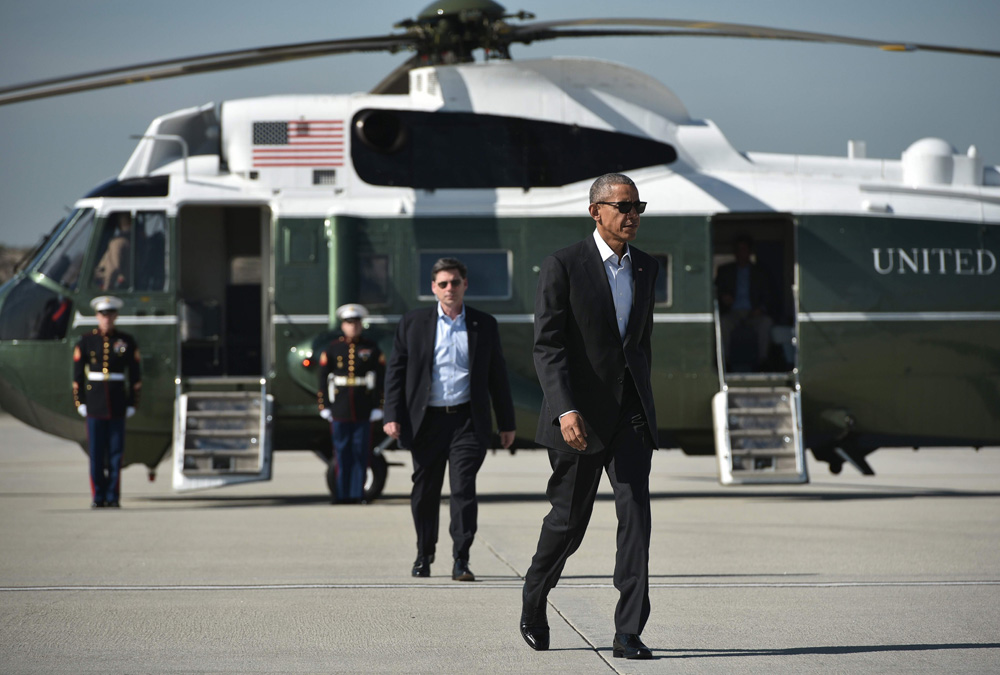 图:美国总统奥巴马12日准备搭乘空军一号前往加州 /法新社