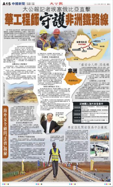 2015年12月12日中午,记者在亚的斯亚贝巴Capital酒店见到了中国中铁埃塞工程项目安全负责人周一鹏。他手上的电话响个不停,只听见他对电话那头的同事交代道:“奥罗米亚州发生了部族枪战,让沿线的工人都不要围观,再开一个安全会议。”他手边的埃塞当地报纸上,写着醒目的大标题“反对派称十名奥姆罗学生抗议者被杀”。每一条新闻信息,都是周一鹏了解安全形势的重要渠道之一。