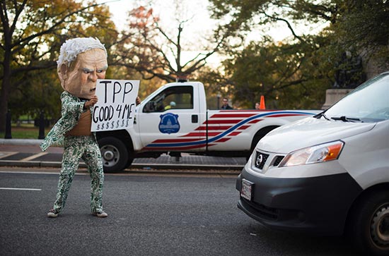图:一名美国民众反对TPP协议/法新社